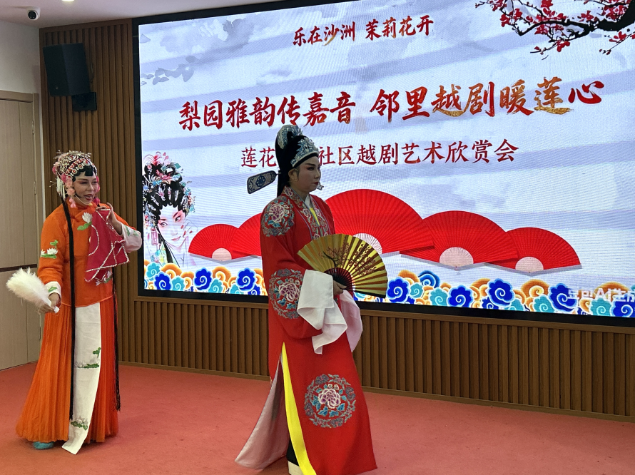 为丰富社区党员与居民的精神文化生活,传承弘扬中华优秀传统文化,增进邻里情感交流,深化“嘉”文化品牌内涵,11月5日,莲花嘉园社区在二楼嘉“he”小剧场成功举办乐在沙洲 茉莉花开“梨园雅韵传嘉音 邻里越剧暖莲心”越剧艺术欣赏会,社区党员、居民共60余人参与活动。