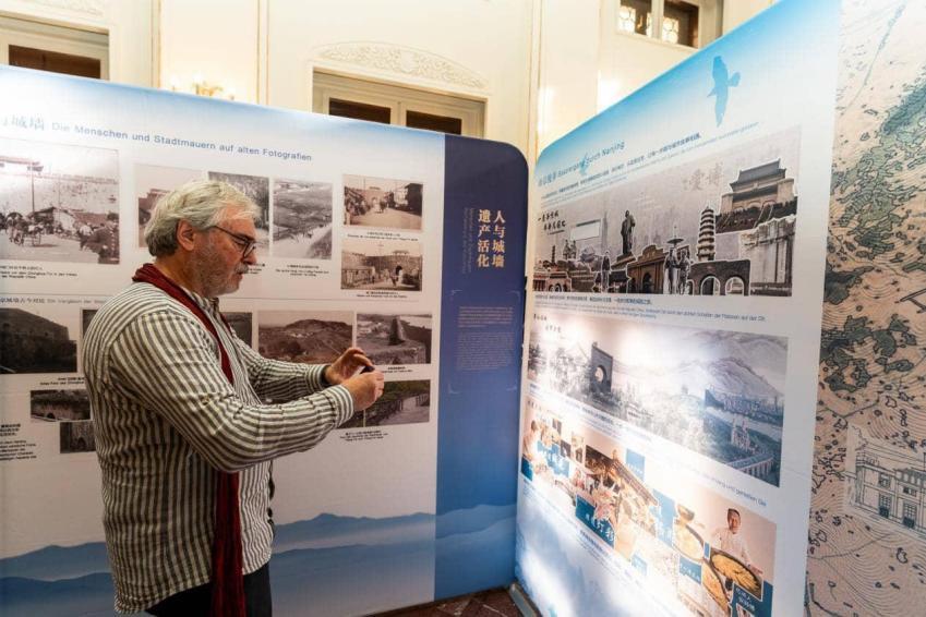 展览现场反响热烈,德国当地观众对南京明城墙的宏大规模及其背后的东方哲学表达了震撼和敬意。一位来自莱比锡大学历史系的学生表示,她被南京城墙的长度和“天人合一”的理念深深吸引,认为这是与欧洲筑城理念非常不同的“东方智慧”杰作。此外,当观众发现展出的“城墙古今对比”照片中有不少来自德国摄影师赫达·莫里逊与东南大学建筑学院的欧洲留学生时,倍感惊喜和亲切。观众普遍认为,无论是南京秉持“修旧如旧”原则守护城墙本色,还是莱比锡以“活态传承” 实现城市有机更新,两座城市都用实践共同印证:历史建筑可以与现代城市共生共荣。据悉,本次展览由南京城墙博物馆提供内容支持,“中国南京周”活动结束后该展览将移至莱比锡大学进行为期一周的持续展出。