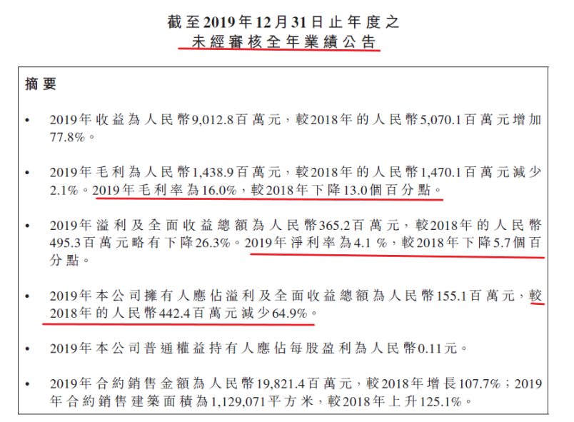 2020年,银城地产披露的2019年度报告显示,上市一年,银城地产并未达到2018年提出的200亿元销售目标,盈利水平大幅下滑。
