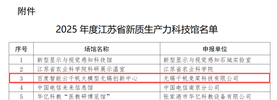近日,百度智能云千帆大模型(无锡)创新中心荣获2025年度江苏省首批新质生产力科技馆称号,并获批2025年度无锡市“基层科普行动计划”项目奖补资金。