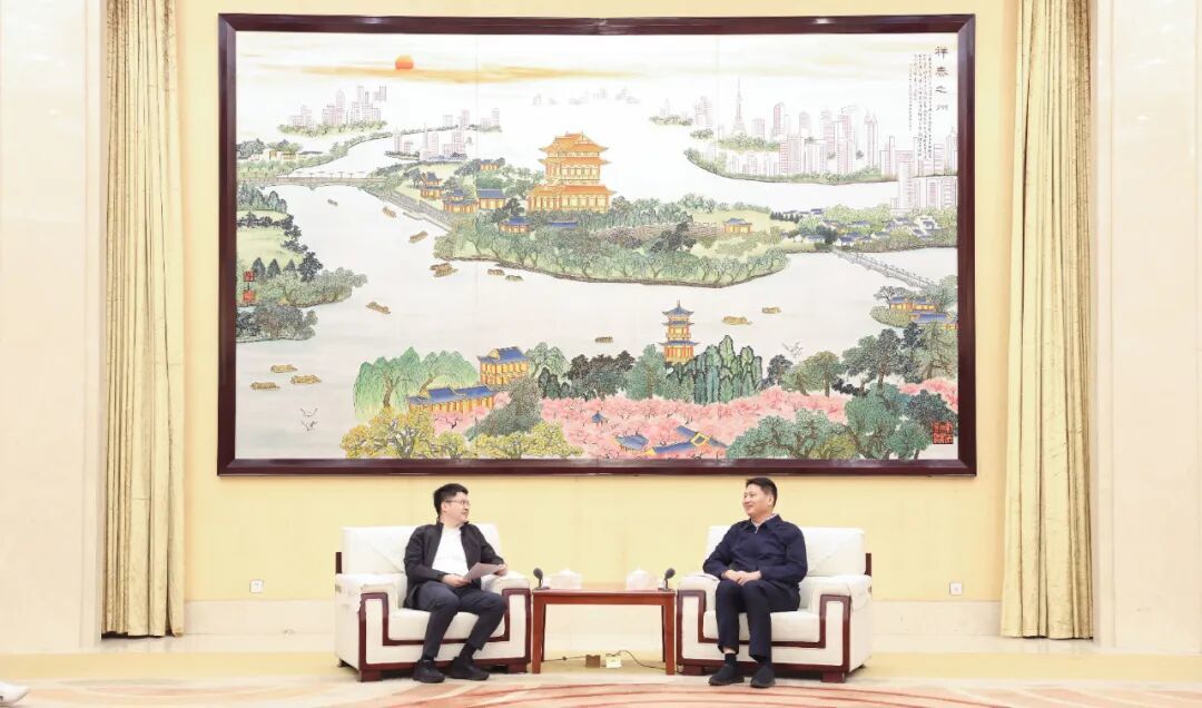 11月14日下午,市委书记姜冬冬会见全国青联副主席、苏州市青年商会会长、亨通集团有限公司总裁崔巍一行,双方就深化合作事宜进行深入交流。