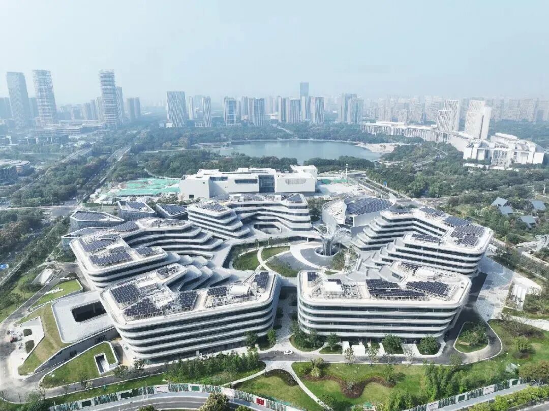 “项目自2022年规划之初,便将可持续发展理念融入该项目的全过程,按照绿色建筑三星级及超低能耗标准建造。”太湖新城建工集团设计管理部负责人张淼介绍,设计阶段充分利用地热、太阳能等可再生能源,构建了多能互补的低碳能源系统,涵盖高效地源热泵、高效热回收、分布式光伏发电、智能充电桩等核心设备,“经测算,园区综合节能率预计超过85%,远高于市面园区建设的平均水准。”
