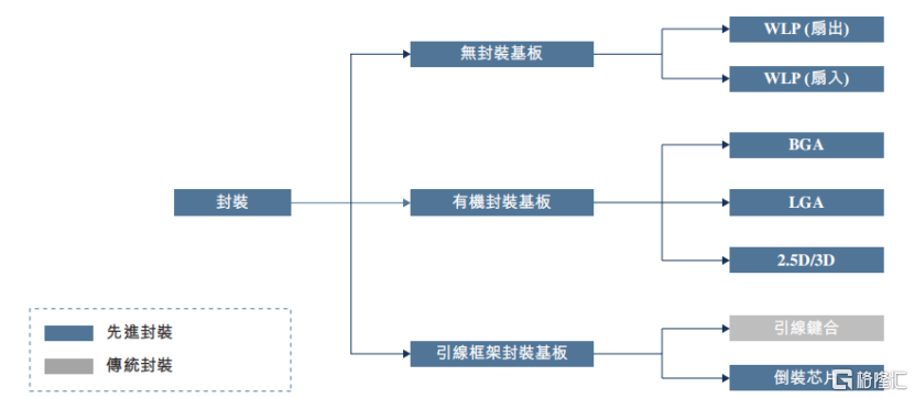 根据是否有封装基板及封装基板的材料,半导体封装产品可分为不同类别。