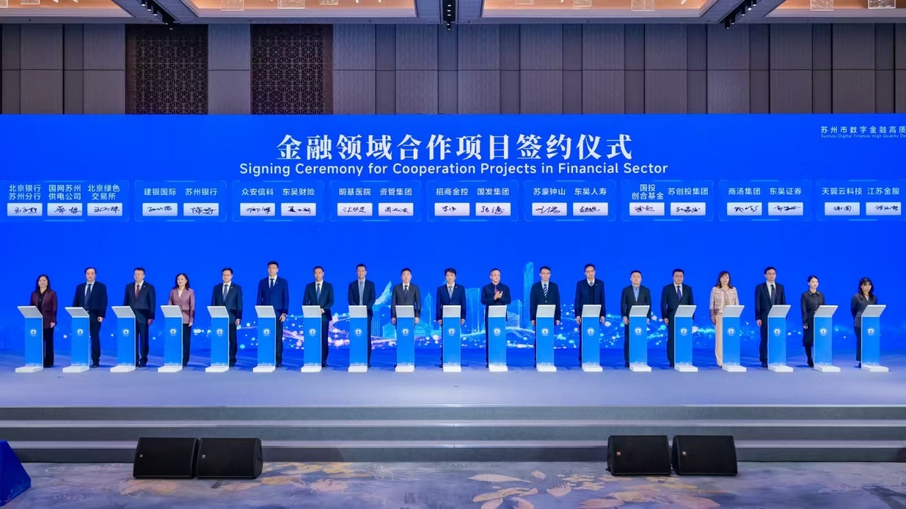 苏州本地国资平台、在苏重点金融机构、全国性金融与科技企业等多方主体进行9个金融领域重点项目合作签约。