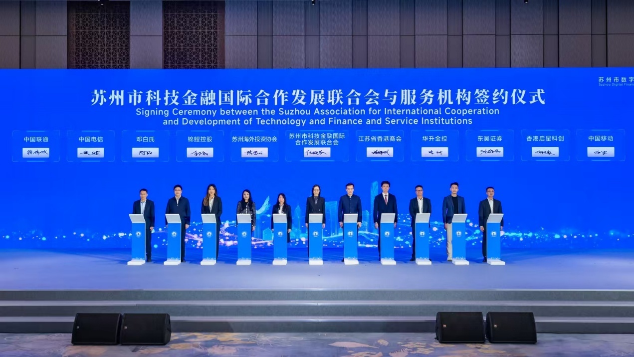 苏州市科技金融国际合作发展联合会与香港数码港发布合作,并与江苏省香港商会、电信运营商、华升金控等服务机构集中签约,共同引导百家优质企业入驻香港数码港。