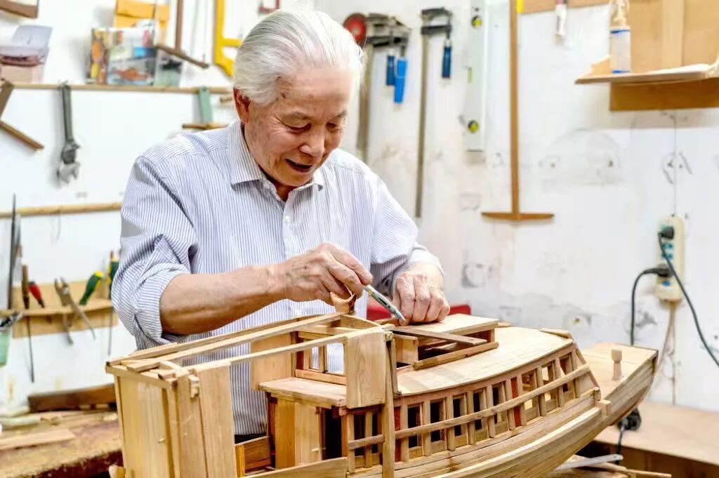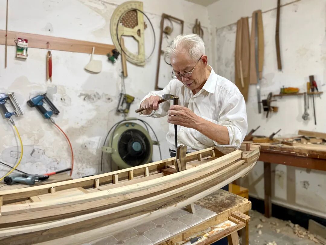 因为对各类木船的热爱,15岁的章桂兴主动向擅长制作内河木船的爷爷学习做船手艺。“要么不做,要做就要做到最精最好,一个环节一个环节琢磨透!”这是爷爷把这门家传手艺托付时的郑重要求,一晃六十年过去,带着这份嘱托和信念,章桂兴毕生都和做船“杠”上了。