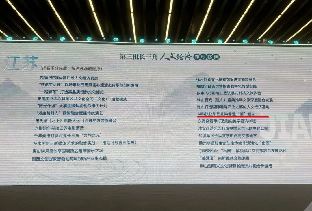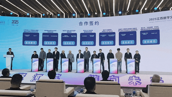 开幕当天下午,2025江苏数字文化产业招商推介会上,江苏华艺服饰有限公司与东华大学签约“AI智能扎染机器人赋能非遗扎染的工艺创新与产业应用项目”,科技赋能传统非遗再上一层楼。