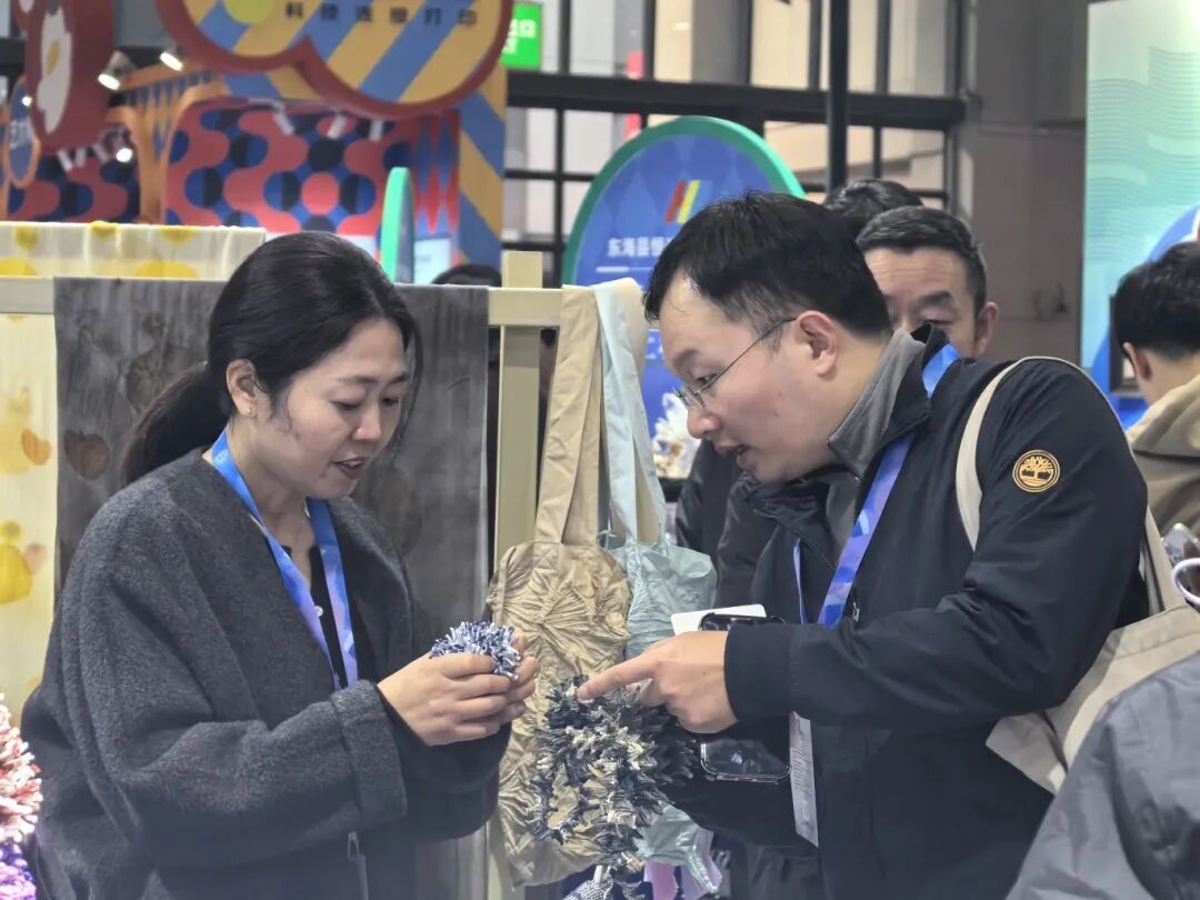 展会现场,各式扎染围巾成为今天的“抢手货”,上海市民李女士表示,“传统技艺与现代科技、时尚设计结合,产品既有文化故事,又有稳定的品质和当代的审美。”“扎染+AI”,让千年非遗扎染不再只是博物馆里的静态的藏品、展品,而是融入当代生活、兼具创意审美的时尚风物。