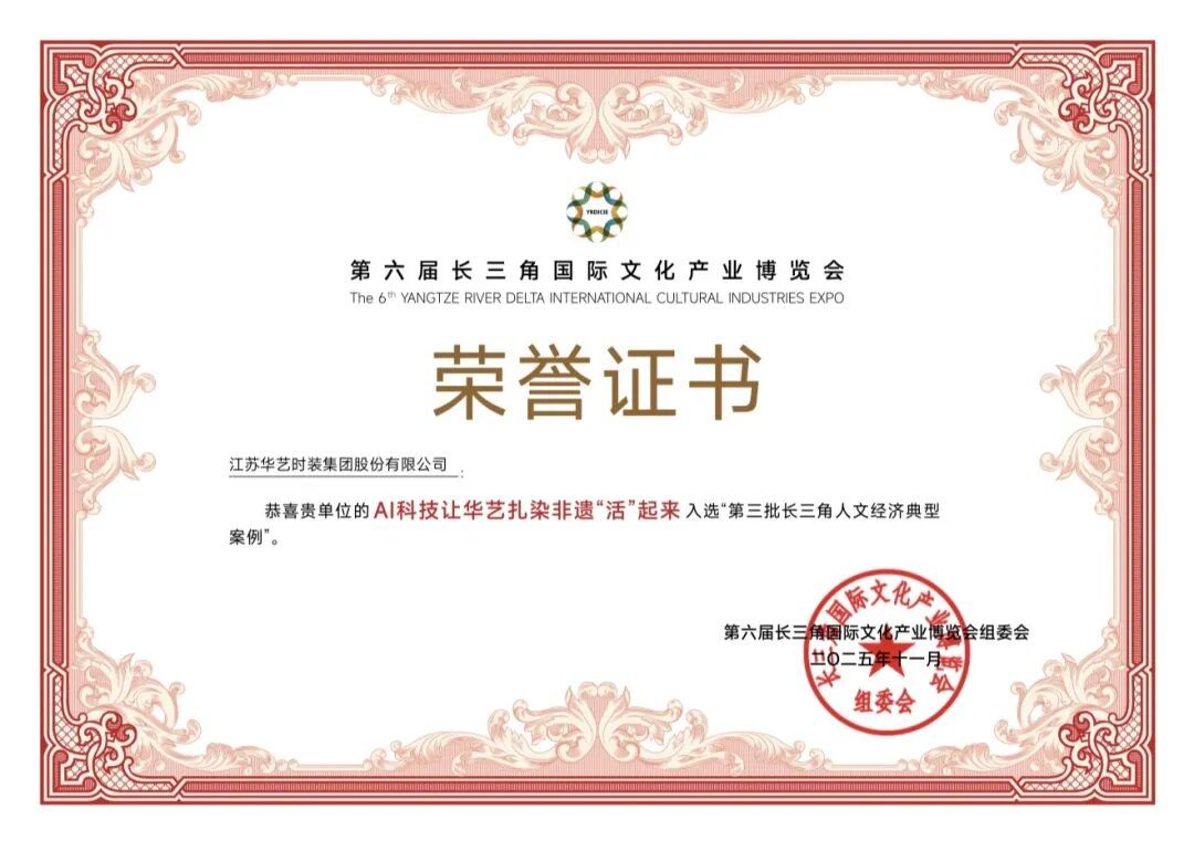 拥有两千多年历史的扎染技艺在漫长岁月中一度处于大众视野的边缘地带,然而,华艺通过“转型升级”,让“文化资源”变为“文化资本”,AI人工智能产线提高生产效率、年轻化设计对接市场需求,让“老手艺”诞生“新质生产力”。如今,越来越多的客商通过华艺了解扎染文化,亦通过扎染了解海安非遗“大家庭”,非遗已然是海安重要的文化名片。