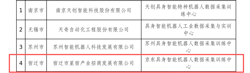 京东云具身智能机器人数据采集训练中心位于宿迁市湖滨新区,是京东云在全国范围内首个具身智能机器人数据采集中心,致力于推动机器人智能化发展与场景化应用。