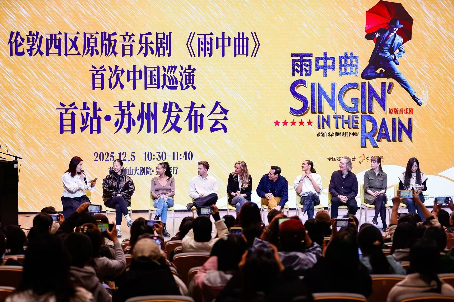 12月5日上午,伦敦西区原版音乐剧《雨中曲》中国巡演首站发布会在苏州狮山大剧院多功能厅内举行。剧目导演乔纳森·丘奇、音乐总监杰西卡·维纳、副编舞凯莉·尤因斯,以及主演格兰特·阿尔米拉尔、夏洛特·古奇等演员代表共同出席,正式宣布这部享誉全球的经典音乐剧将于12月7日至14日登陆苏州,开启全国巡演第一站。