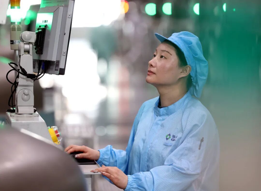江苏协鑫硅材料科技发展有限公司生产车间内,工人全神贯注忙生产。