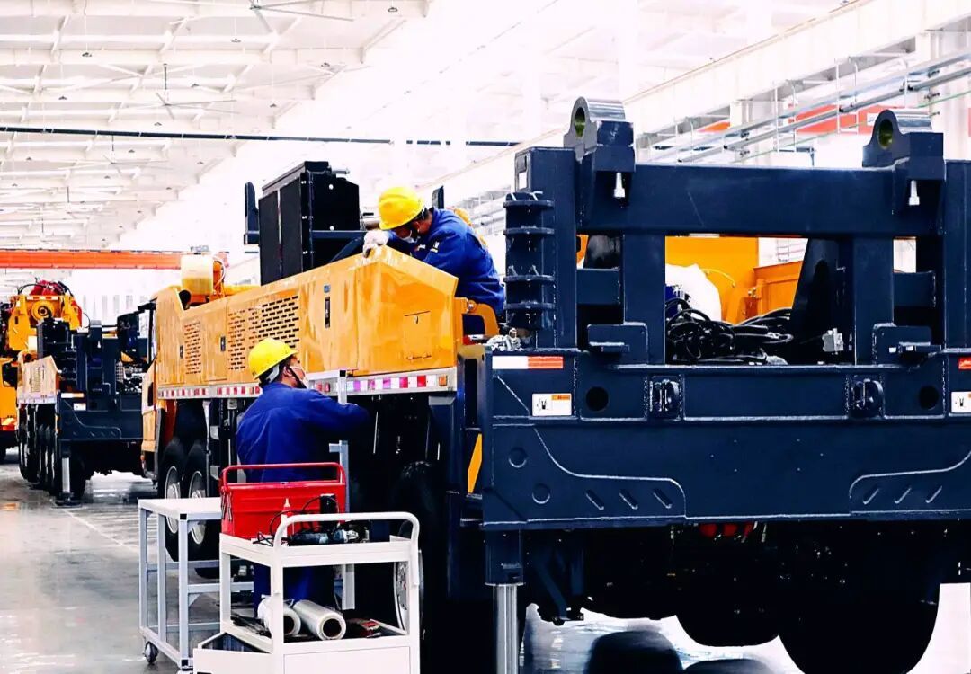 徐工基础工程机械智能制造基地车间内,各条生产线紧张有序地忙碌着。