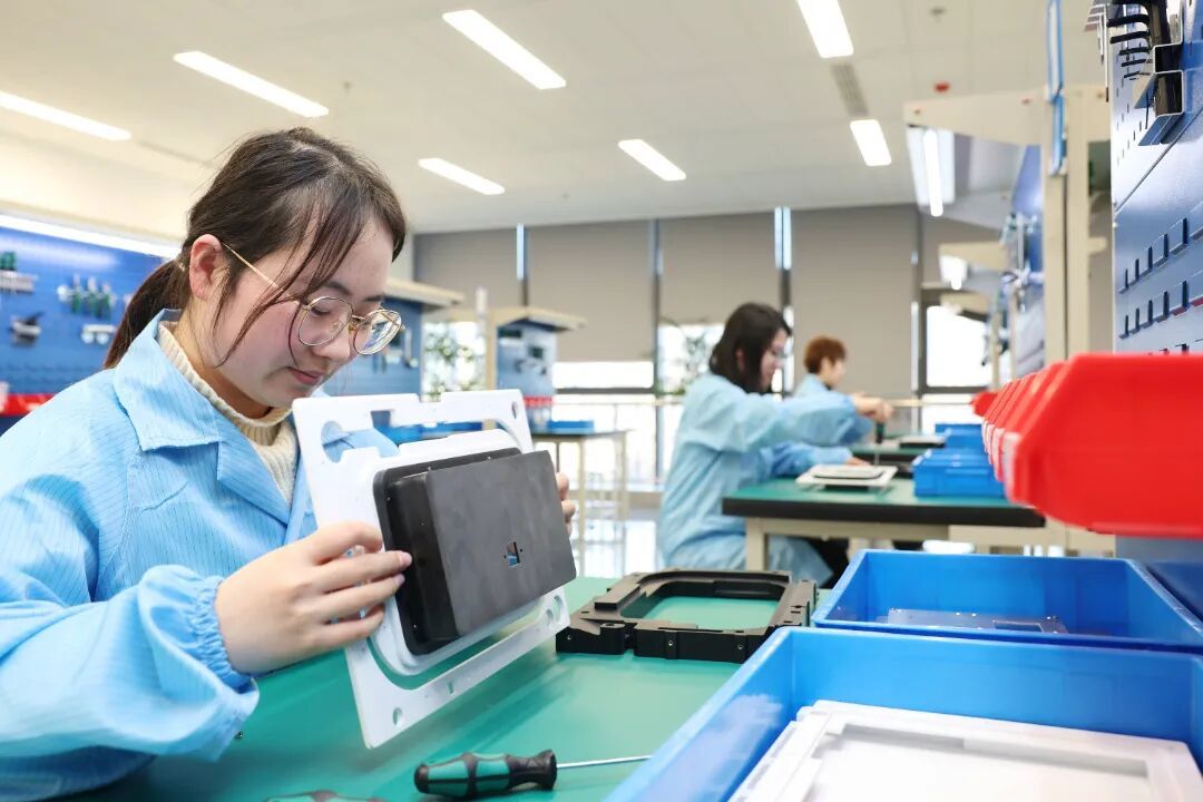 江苏省精创电气股份有限公司的生产车间内,工人们忙生产,赶订单。