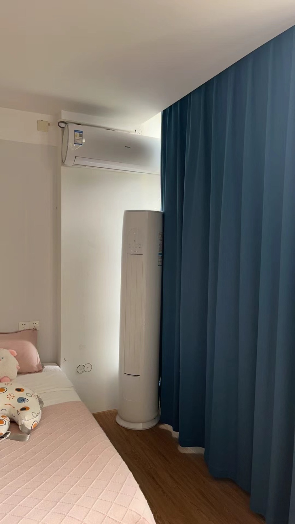 成女士称,瑞金公司销售并安装的空调(挂机)无法满足月子中心要求,她另购了柜式空调。受访者供图