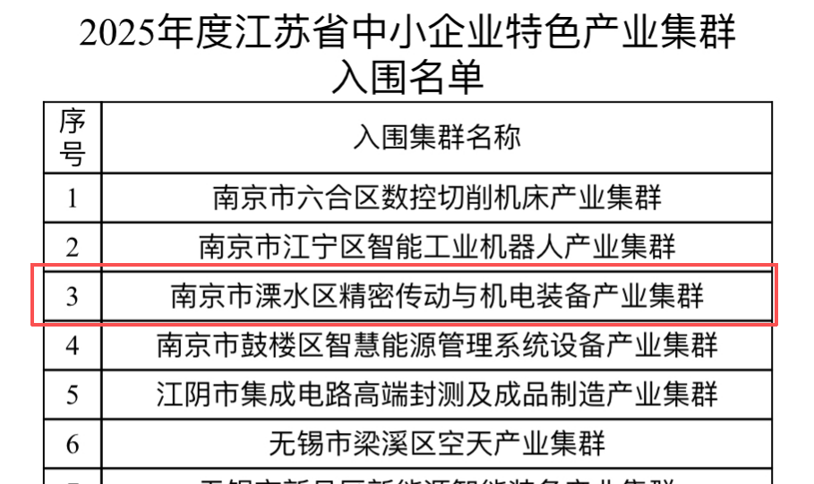 溧水区精密传动与机电装备产业集群
