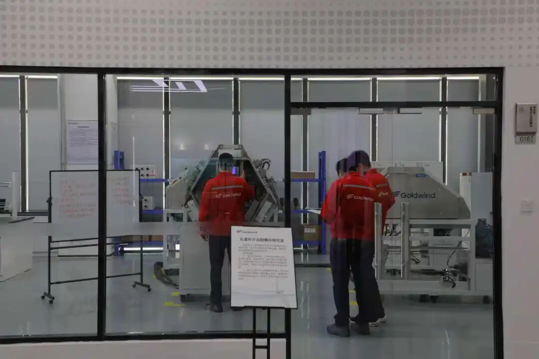 在园区金风前沿技术研究院,80米长的风机叶片正在实验室里“跳舞”——这是金风科技研发的长柔叶片流固耦合技术,能让叶片在风中灵活调整姿态,年发电量提升1%-3%。