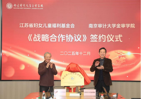 12月18日下午,南京审计大学金审学院与江苏省妇女儿童福利基金会《战略合作协议》签约仪式暨“公益种子高校指导驿站”揭牌仪式隆重举行。