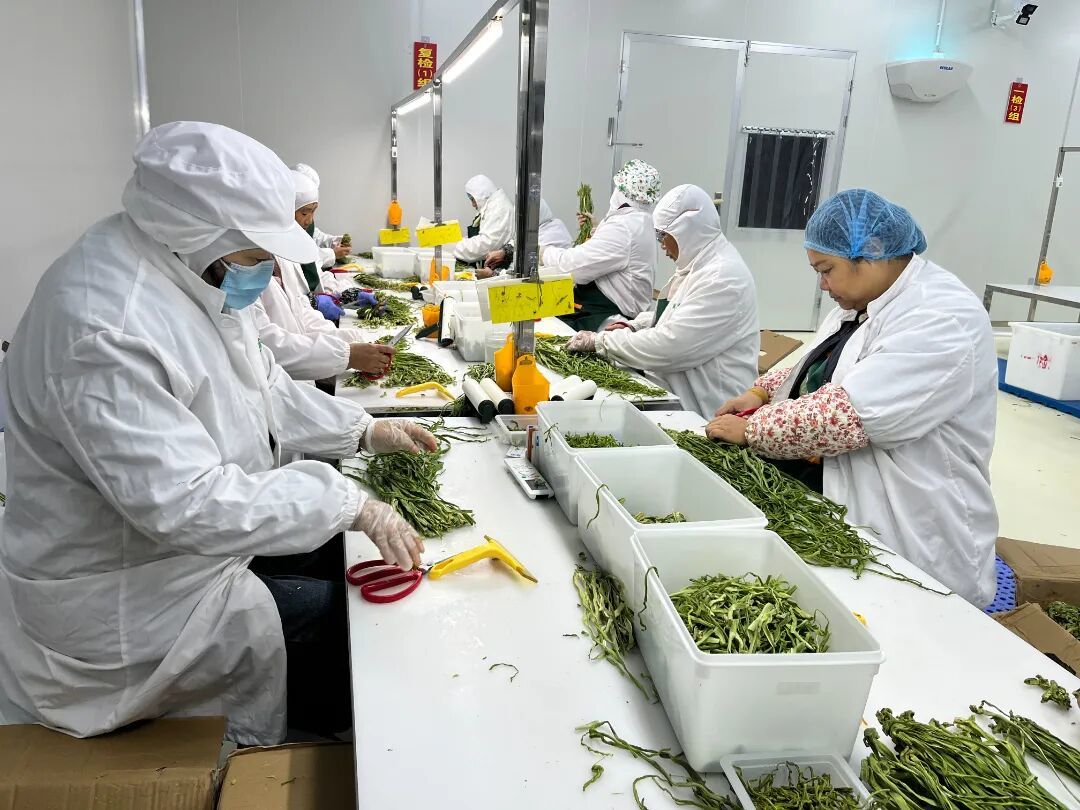 四季度通常是食品行业的传统旺季。在徐州四蔬五菌生物科技公司生产车间里,工人们正忙着对苔干进行挑残、去白、除杂,将翠绿的苔干丝修剪整齐。随着本地苔干进入收获季,企业原料供应充足,年底市场订单也呈现持续增长态势。