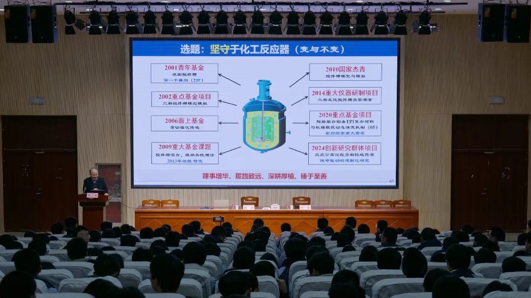 随后,他结合自身研究方向,深入浅出地分享了团队在多相流反应器工程等领域的科研进展与突破成果。杨超院士还结合自身成长经历,袒露了自己深耕科研的同时,始终保持着对文科知识的热爱。