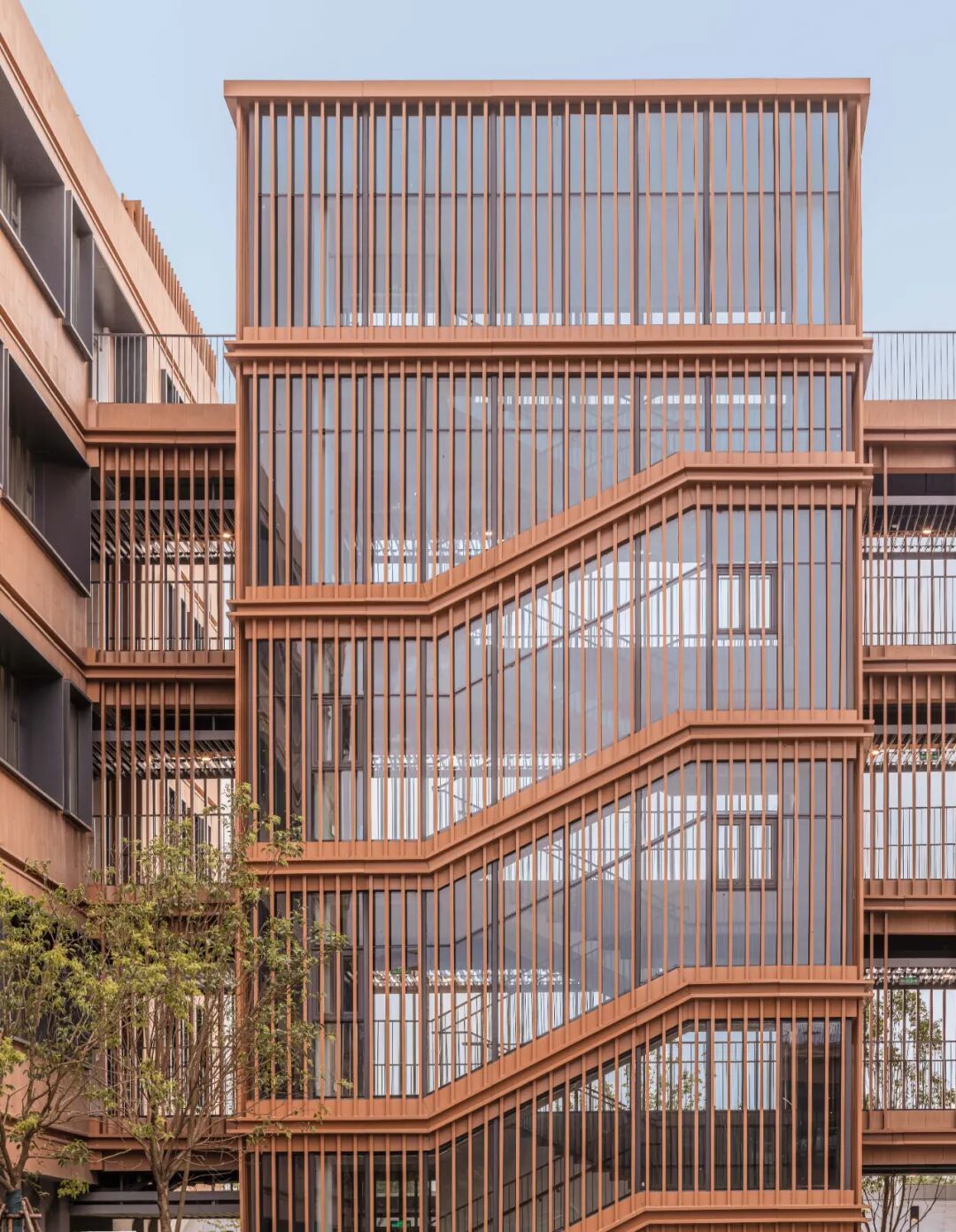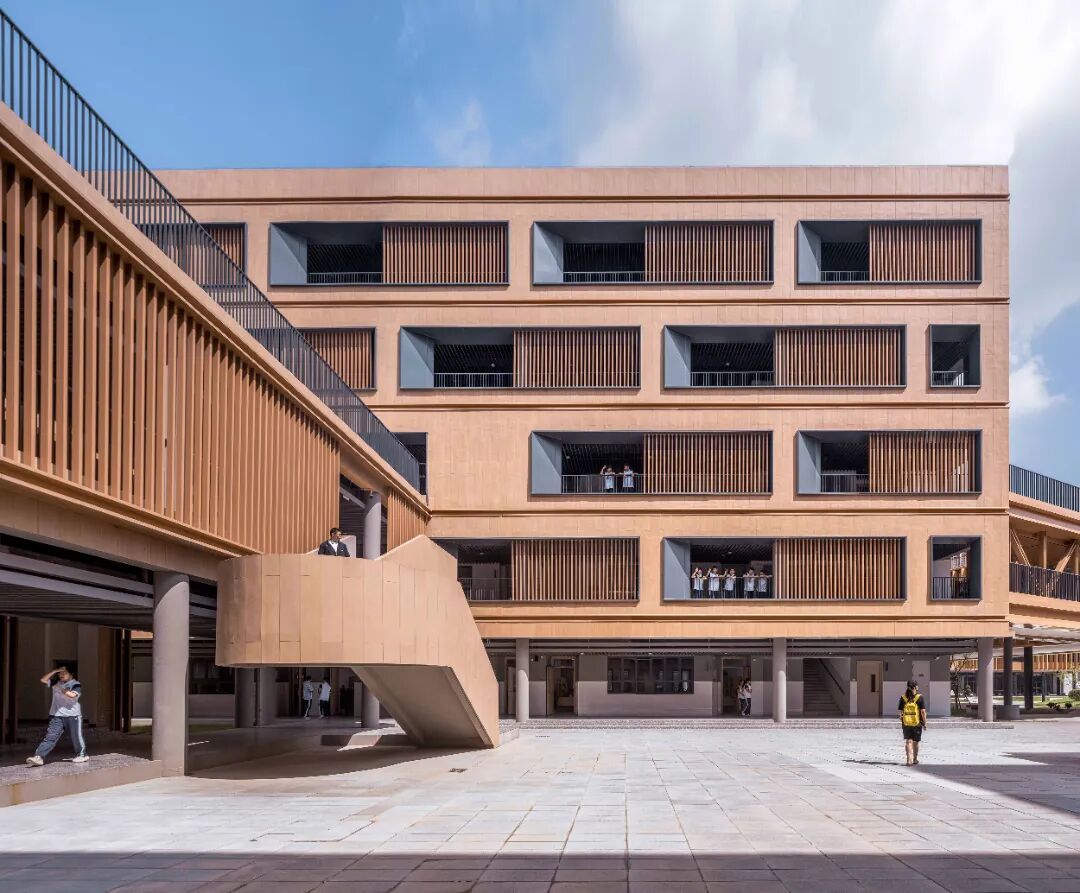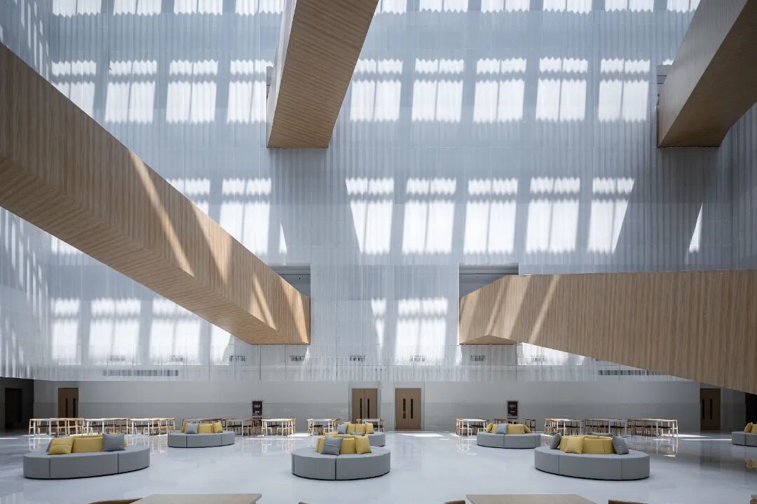 此次获奖的江苏省梅村高级中学空港分校项目,位于薛典路与锦程路交叉口,总建筑面积95339.19平方米(地上建筑面积86373.19平方米,地下建筑面积8966平方米),在设计上兼具地域特色与绿色理念。