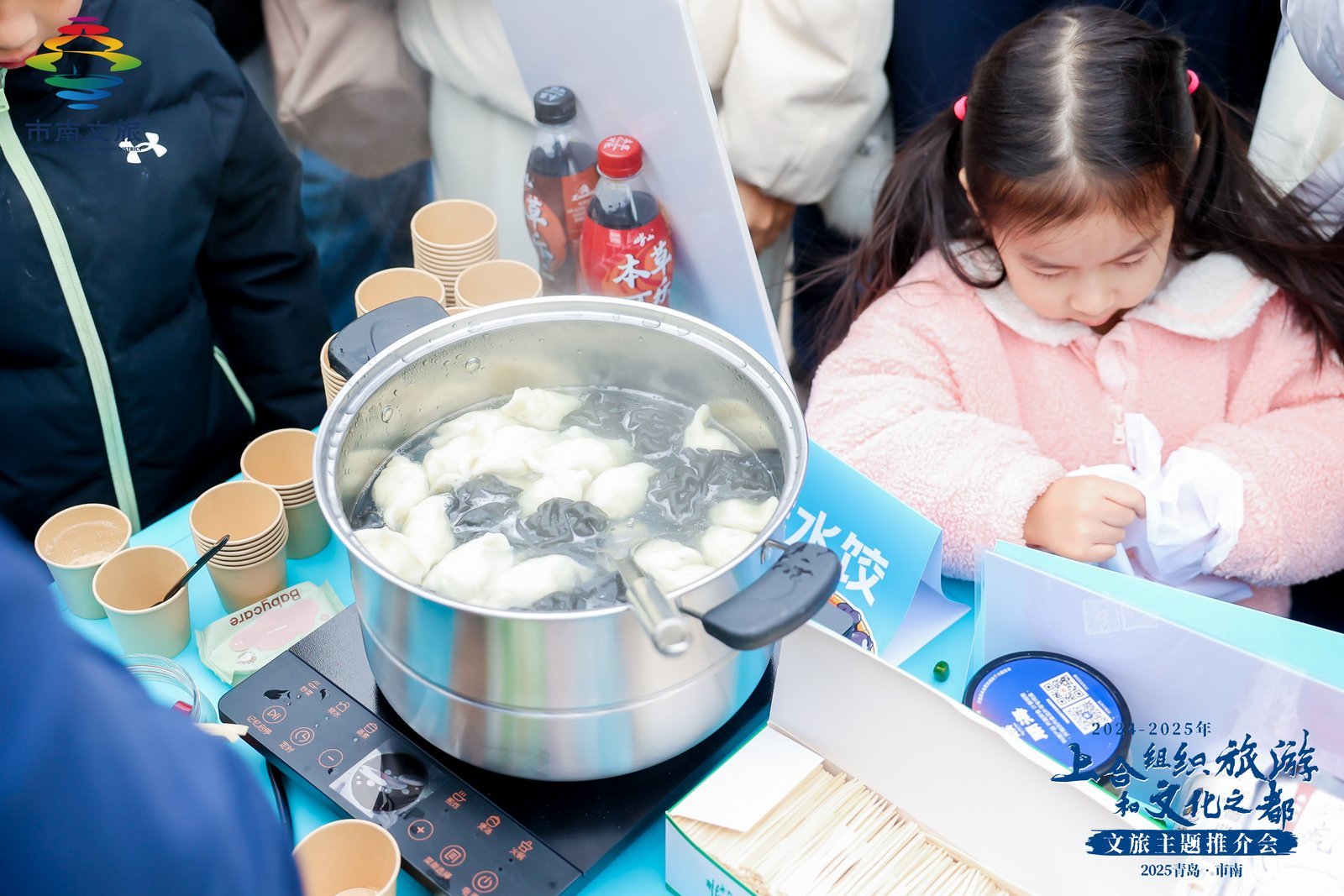 相约冬至,尝鲜青岛美食。除了互动打卡,青岛美食也惊艳四方。冬至吃饺子,市南区文旅局带着热气腾腾的开海海鲜水饺,将“团圆幸福,春归有期”的祝福送“至”广大游客。麻辣小海鲜、吕氏疙瘩汤、青食钙奶饼干、崂山可乐、青岛原浆啤酒等经典青岛味道现场品尝,喂饱你的好奇心。