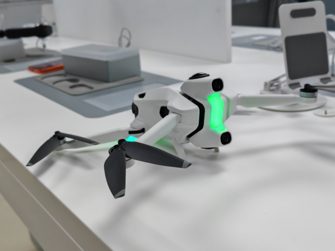 白色机身镶嵌着两颗“明眸”摄像头,展开的旋翼恰似矫健的翅膀。走进影石创新科技股份有限公司(以下简称影石创新),这款本月刚推出的全球首款全景无人机,一亮相就吸引了所有人的目光。
