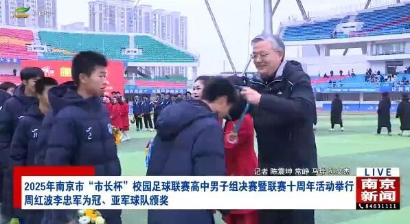 据《南京日报》消息,12月20日下午,2025年南京市“市长杯”校园足球联赛高中男子组决赛暨联赛十周年活动在江宁体育中心主体育场举行。雨花台中学代表队2比0战胜第二十九中学代表队,夺得该组别冠军。