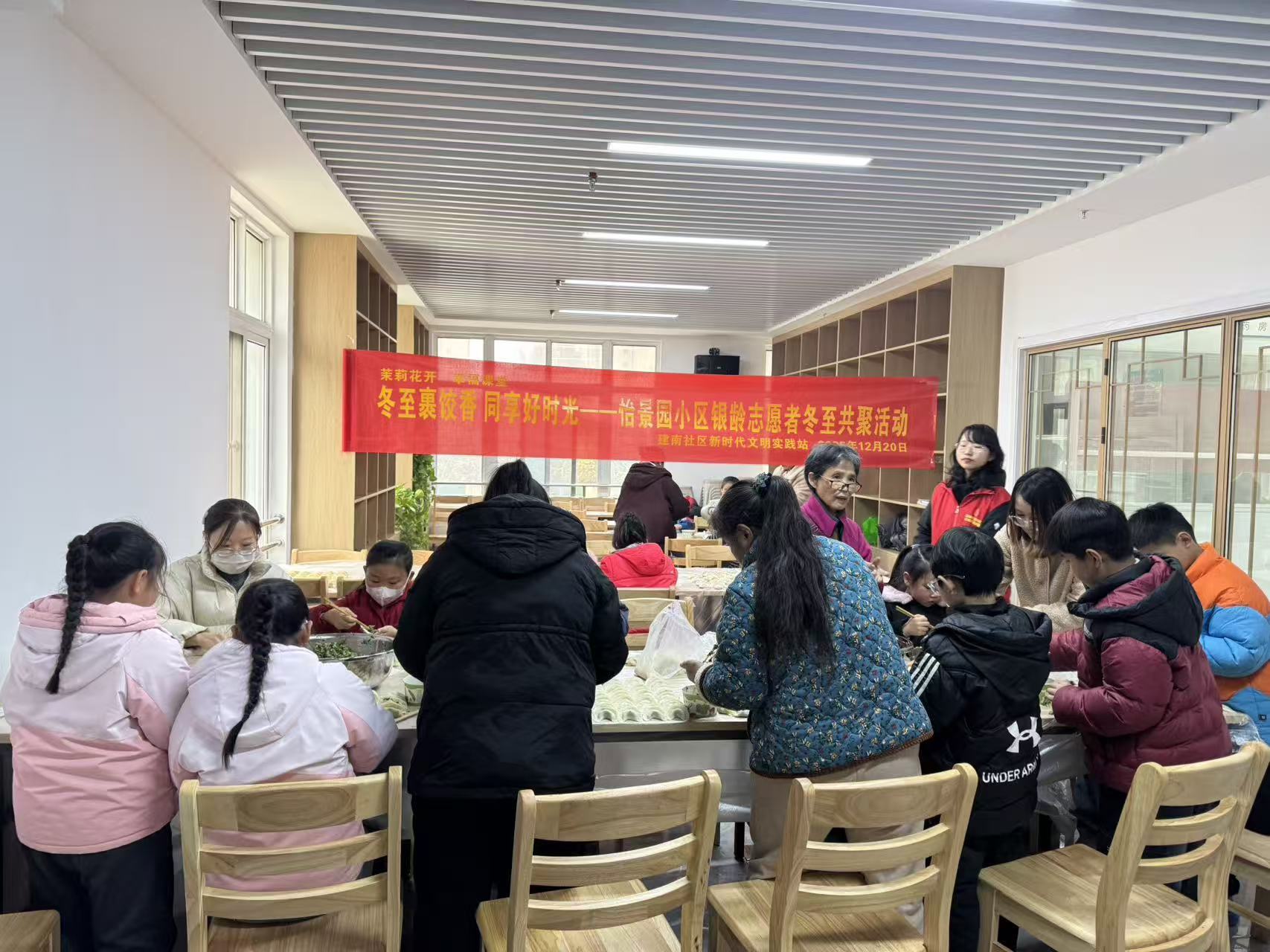 岁至冬至,情暖社区。12月20日下午,麒麟街道建南社区新时代文明实践站举办“冬至裹饺香,同享好时光”银龄志愿者冬至活动,党员志愿者通过“民俗科普+动手实践”的形式,带领居民们在欢声笑语中感受传统节日的魅力。