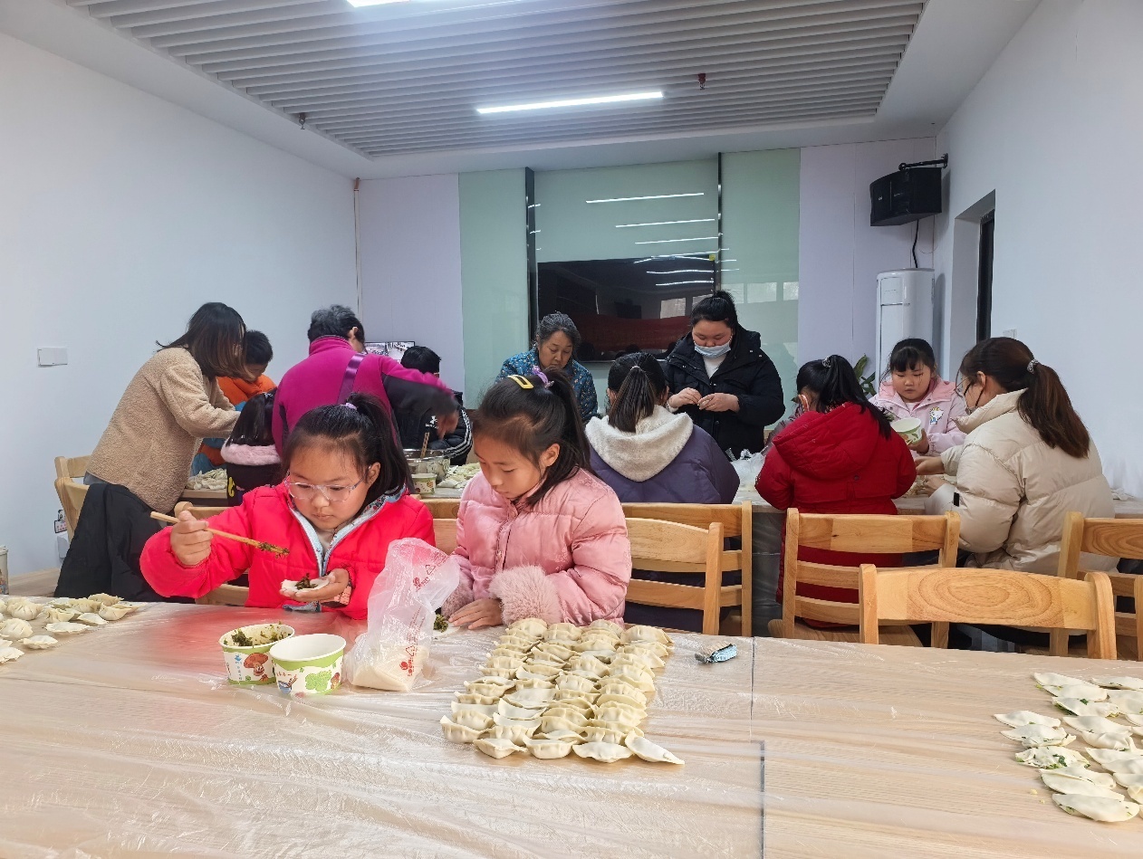 包饺子大赛环节是活动的一大亮点。党员志愿者将备好的饺子皮、多种口味馅料分发给居民,大家迅速分工、默契协作,擀皮、填馅、捏褶一气呵成。老党员们一边带领大家包饺子,一边分享 “元宝褶”的技巧,传授馅料调味秘诀;孩子们一边学着包饺子,一边聆听老党员讲述往昔奋斗岁月。一个个形态各异的饺子,承载着浓浓邻里温情与节日暖意。