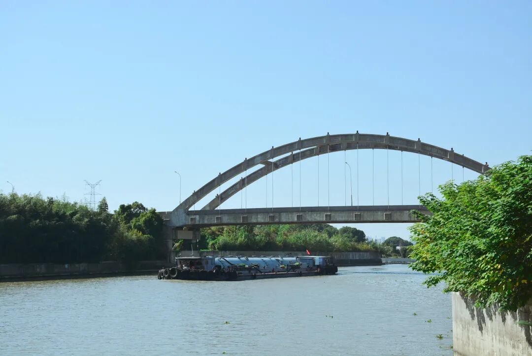 老村民:“六十年代中期!两根高大的水泥桥墩立在河心,三段混凝土组成的桥梁,飞跨南北——气派得很!在新桥建成之前,我们去运河南岸全靠摆渡船。汛期水急浪大,小孩子坐那摇晃的小船都害怕得很。”