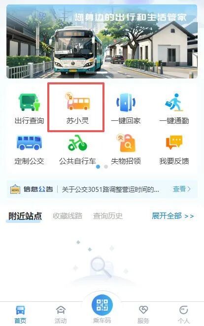 1.访问“苏智出行”微信小程序,进入“苏小灵”模块,就能完成动态公交预约,轻松开启便捷出行之旅。