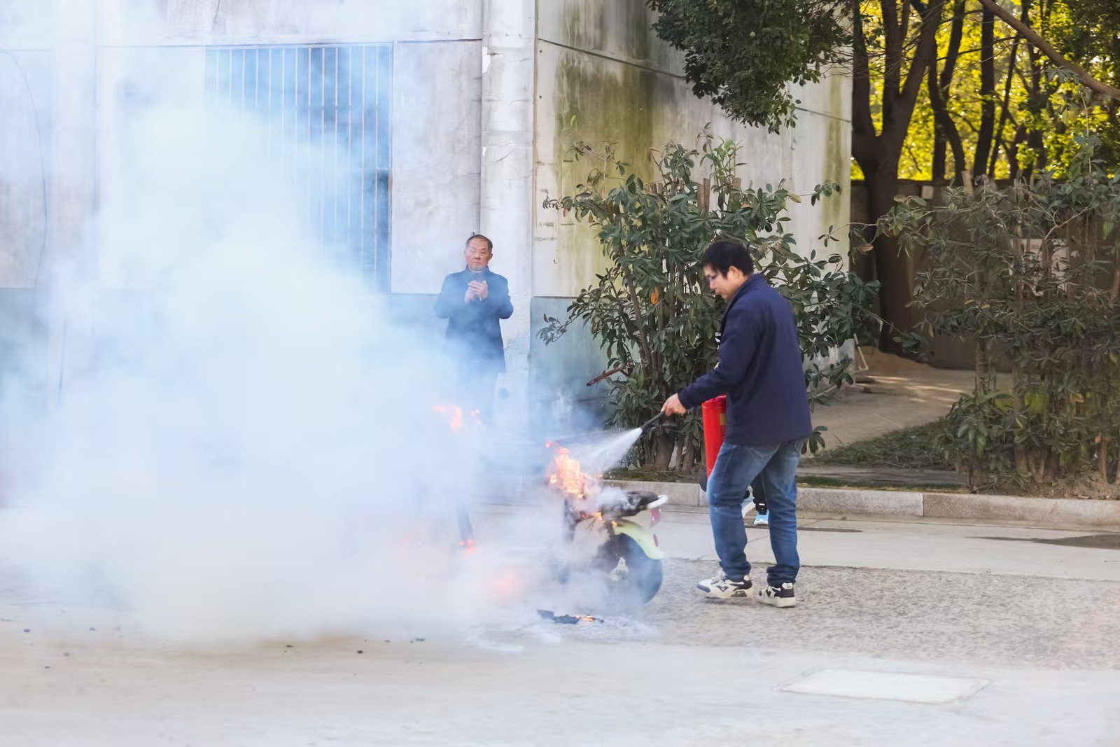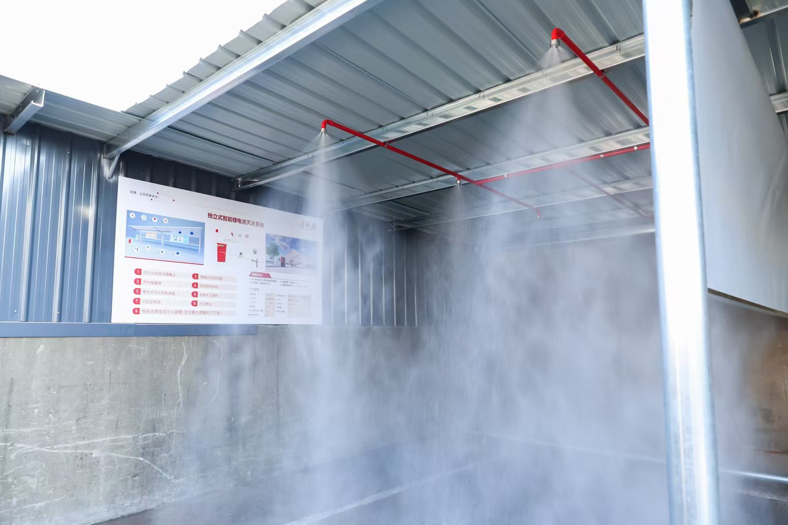 三元锂电池在模拟电动自行车电池仓中突发热失控,火焰瞬间窜起,但在场嘉宾还来不及惊慌,一场无声的“秒级”灭火已悄然完成。