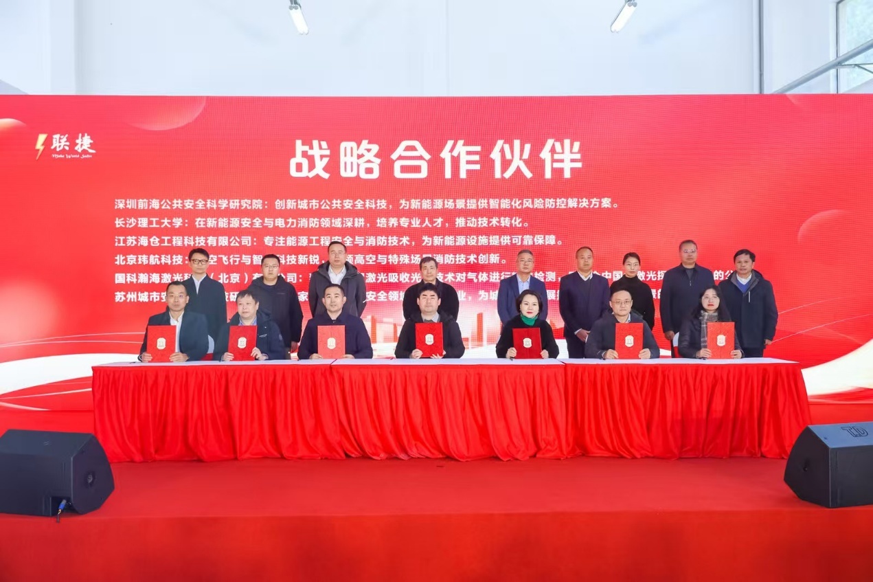 活动现场举行了多轮战略签约仪式。联捷科技与苏州国家安全教育研究院、中石油江苏分公司、中国安能集团、比亚迪消防研究所、深圳前海公共安全科学研究院等十二家覆盖产学研用金的顶尖机构携手,共同组建新能源安全领域的“国家级创新联合体”。
