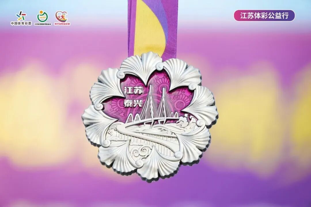 此次赛事赛事通过众多别出心裁的设计,致力于为跑者打造独一无二且记忆深刻的参赛体验。其中最受瞩目的完赛奖牌,被跑者誉为“可佩戴的泰兴故事”。设计融合常泰大桥的力与美与泰兴银杏的韵与意,以桥为骨,展跨越之势;以叶为魂,寄生生不息之愿,将超级工程与千年植物的意象凝聚于方寸之间,成为值得珍藏的城市文化符号。