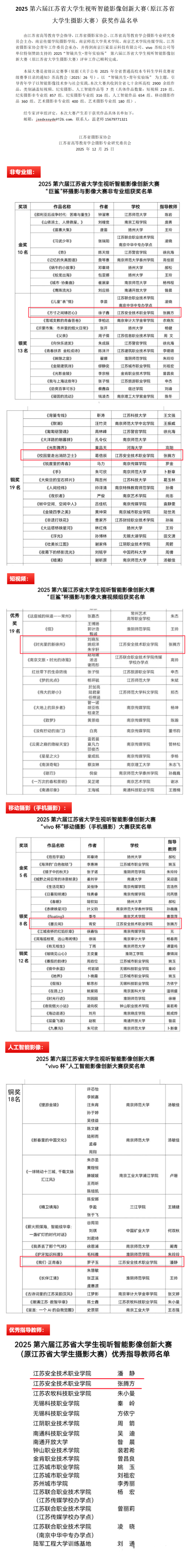 江苏省大学生视听智能影像大赛由原江苏省大学生摄影大赛升级而来,由江苏省高等教育学会指导,江苏省摄影家协会、江苏省高等教育学会摄影专业研究委员会主办,是省级认定赛事。本届大赛以“智镜共生·青年实验场”为主题,引导青年学生以智能影像技术参与社会实践,全省共有70余所高校参赛,2900余组作品参评。学校参赛学生以光为媒,巧妙运用光影,用镜头记录生活点滴,展现学校特色发展成果。本届比赛全赛道均斩获奖项,实现奖项等级和数量跃升,是继第四届大赛张申同学获得优秀奖、第五届大赛胥安同学获得铜奖后的新突破,充分展示了学校扎实做好校园文化和网络思政工作的新成绩。