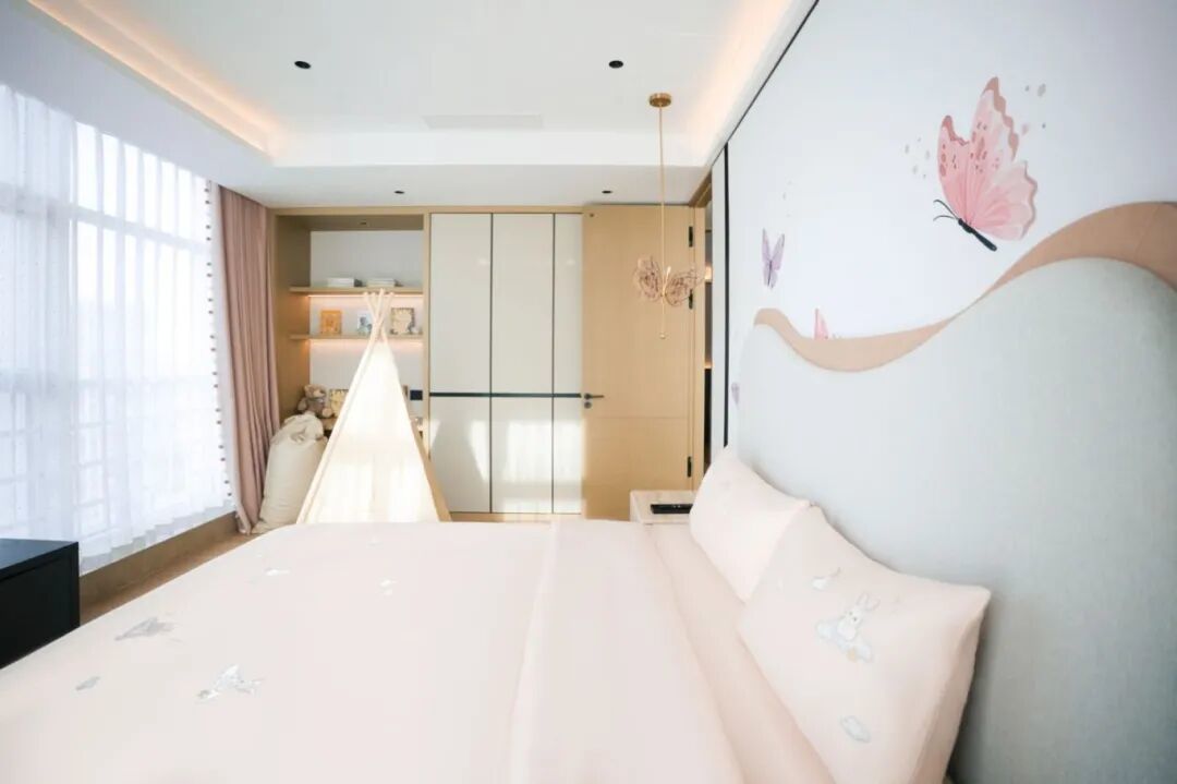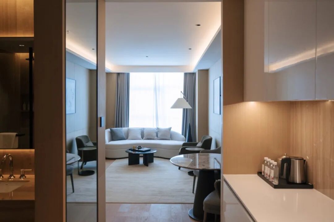 酒店共设190间客房及套房,涵盖9种房型,面积自42平方米至124平方米。设计以自然柔和色调与细腻肌理,延续“家外之家”的温暖承诺。部分套房配备厨房及洗烘设备,兼顾长住客群与家庭旅客的便利需求。
