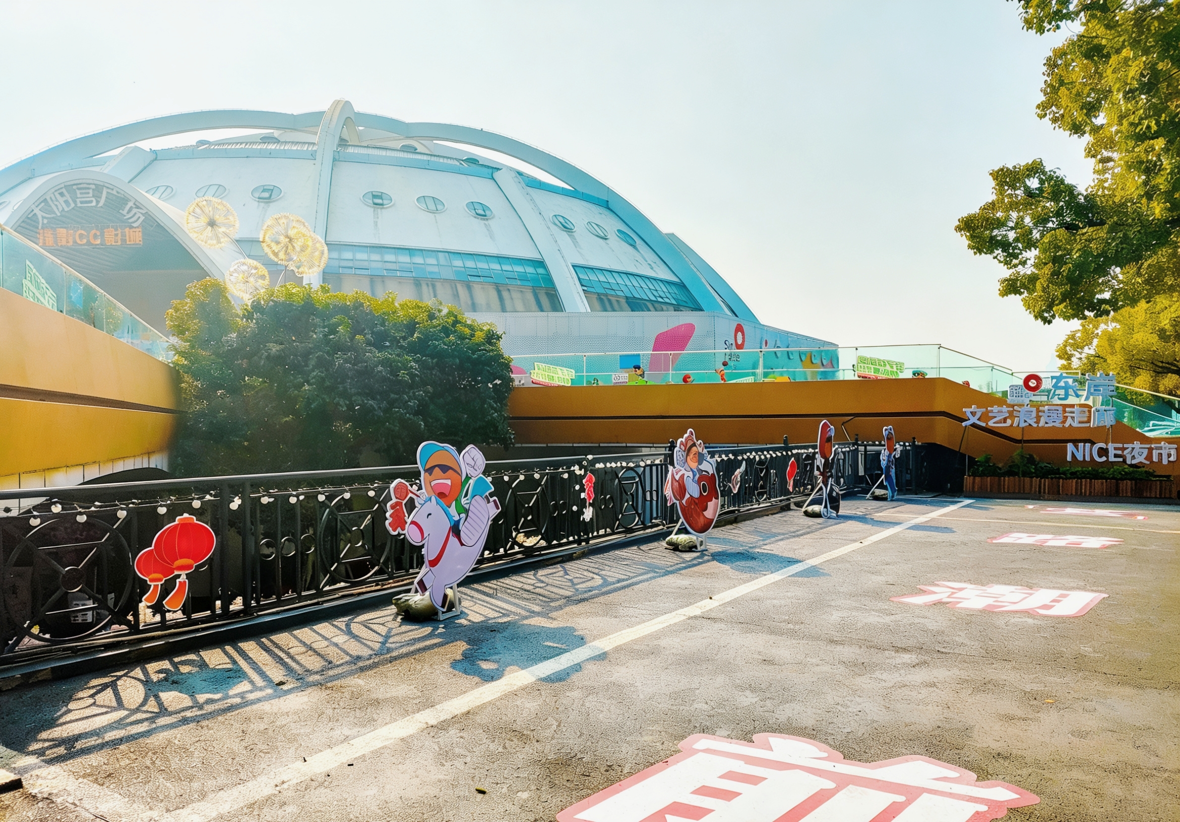 金陵STYLE浪漫中心设置电子篝火装置、马头美陈、“见字如面”心愿墙及“马上”系列许愿打卡点;南京商厦六楼“岁月轨记”照片展以火车与铁路变迁为主线,勾勒出城市的记忆长卷;太阳宫则围绕“艺路朝前”主题,结合自有IP形象,通过灯箱、霓虹灯等装饰,在阳光路沿线及剧场内营造出独具特色的艺术迎新氛围。