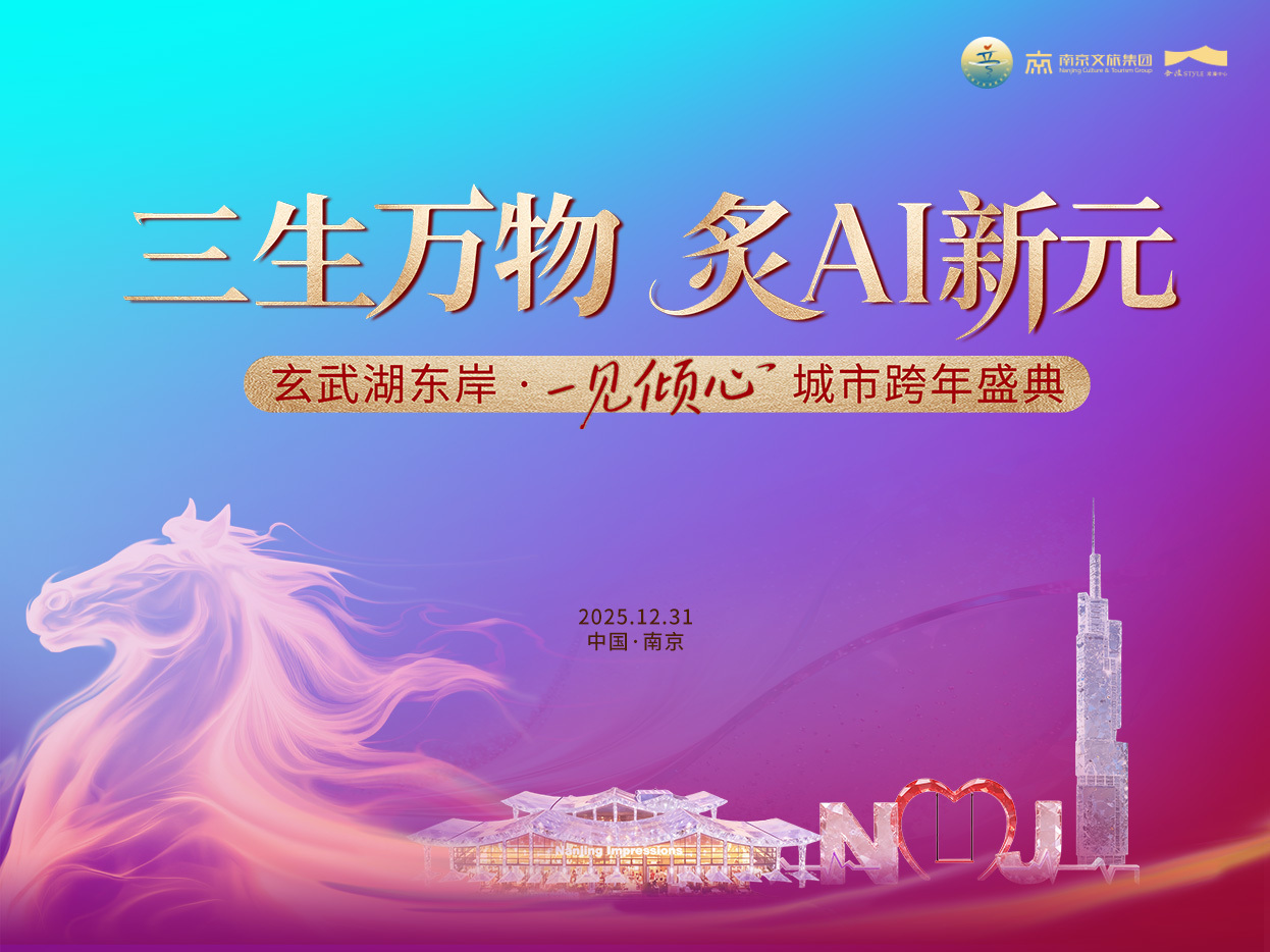2025年12月31日至2026年1月1日,“三生万物 炙AI新元”玄武湖东岸跨年盛典正式拉开帷幕。其中,“三生万物”寓意环玄武湖文旅消费发展联盟成立三年,金陵STYLE浪漫中心也恰逢“三周岁”;“炙AI新元”则呼应玄武区以前瞻性视角布局人工智能产业赛道,以热烈而浪漫的笔触精绘数字文旅“新篇”。