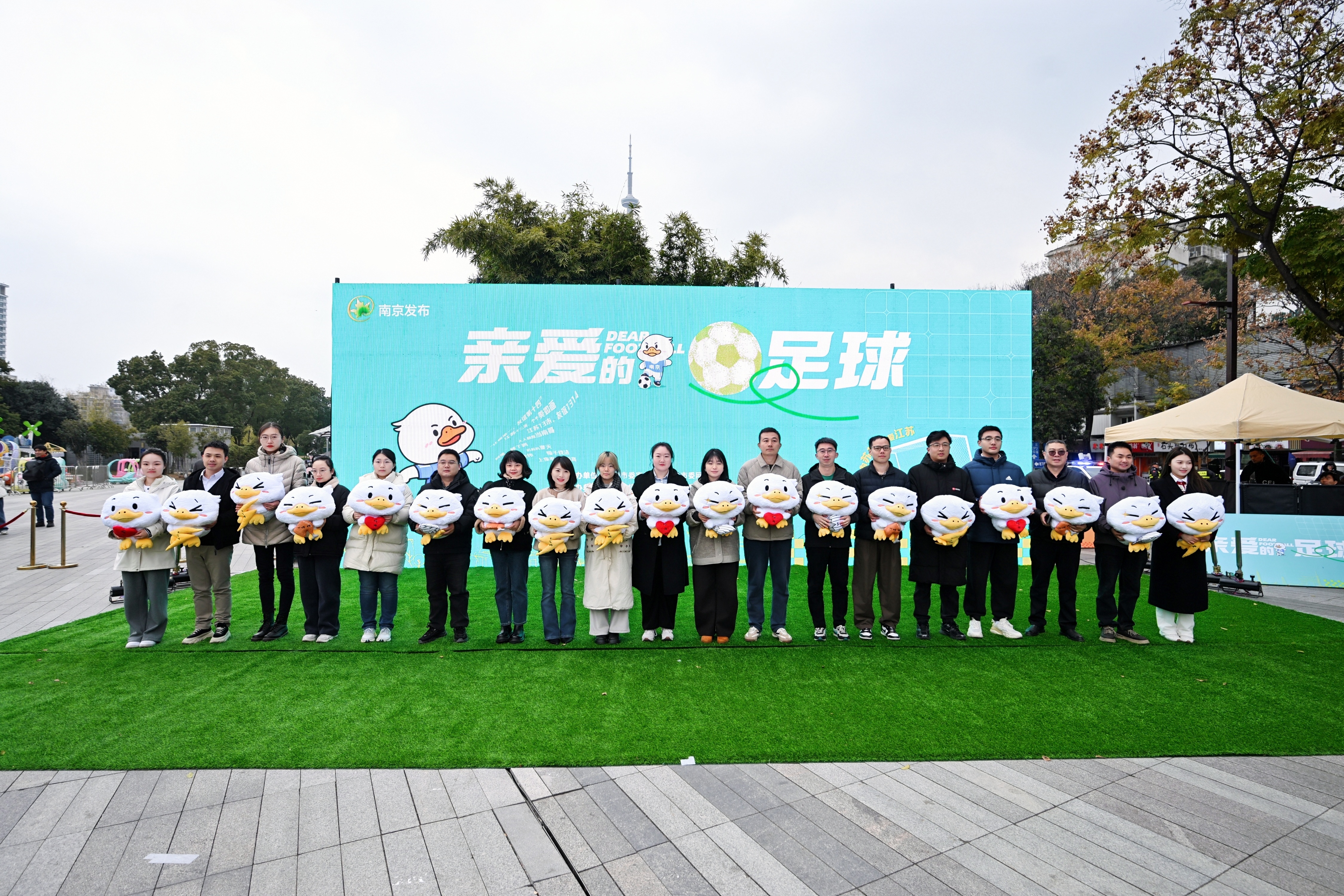 新书发布环节充满寓意:球员将足球郑重传给少年,象征梦想接力;南京发布向媒体人赠送“布布鸭”,致敬每一份传播力量。随着嘉宾共同拉开礼盒丝带,气球托起横幅,《亲爱的足球》正式与城市相见。