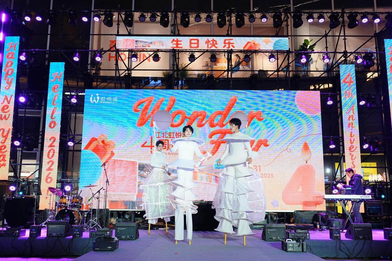 作为江北区域的核心商业地标,江北虹悦城四年来始终以“丰富市民生活”为己任,不断引入高品质、多元化的文化活动。此次4周年庆,为江北人民提供了一个家门口的跨年狂欢地,让市民无需远行就能享受顶尖水准的文化盛宴。活动中本土与流行文化的交融、传统与现代艺术的碰撞,不仅丰富了市民的精神文化生活,更增强了社区的凝聚力与归属感,为江北区域的文化建设注入了新动能。