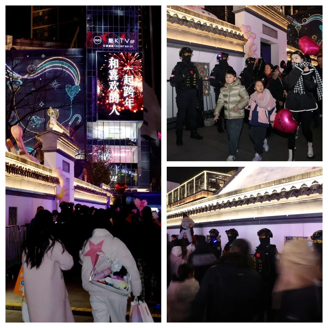 九里仓轻文旅街区烟火城市音乐节现场,由消防、交警、城管、卫健和社区网格员组成的约300名保障力量前置就位,保障市民游客喜迎新年。