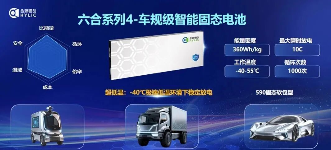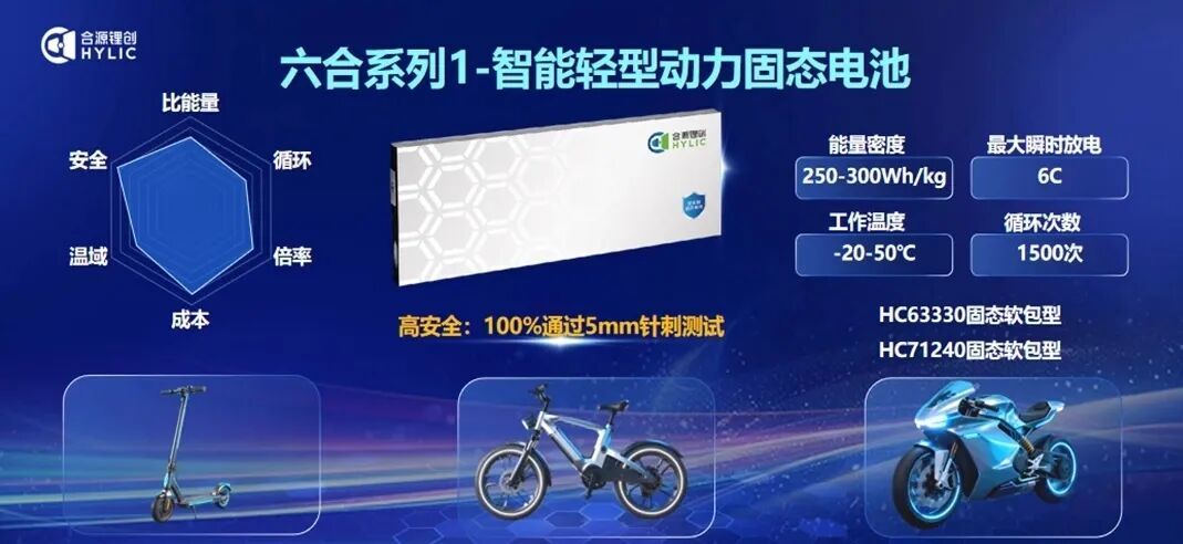 发布仪式上,合源锂创隆重推出基于六大原创技术打造的“六合”系列固态电池产品,并交付首批客户。“六合”系列秉承“智慧平衡”理念,致力于在能量密度、安全性、温域适应性、循环寿命、倍率性能及成本六大核心维度上实现综合最优解与场景化定制,精准满足多元市场的差异化需求。