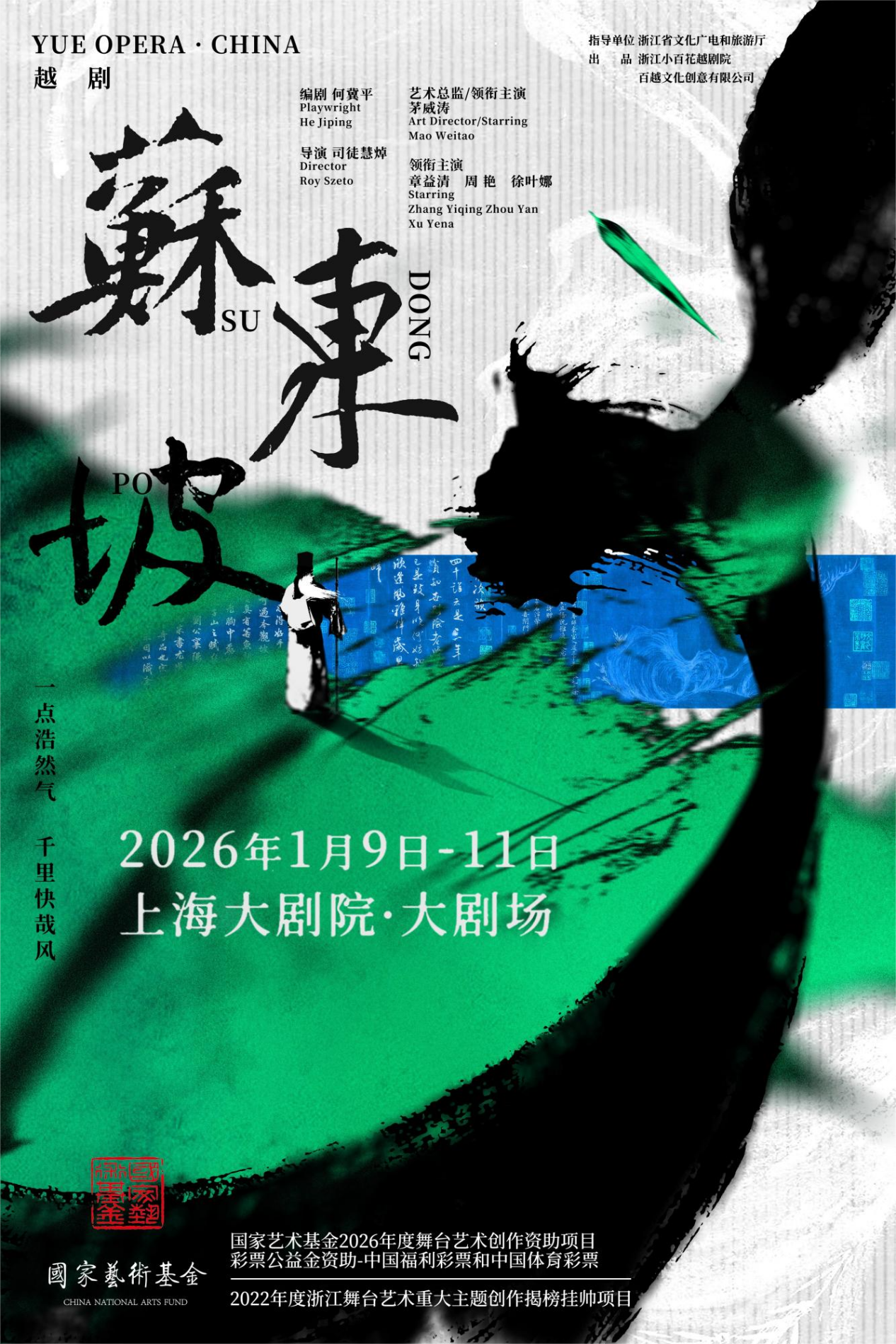 2025年12月31日至2026年1月1日,由浙江小百花越剧院、百越文化创意有限公司联合出品的国家艺术基金资助项目、浙江省舞台艺术重大主题创作揭榜挂帅项目越剧《苏东坡》在杭州蝴蝶剧场跨年首演。该剧联合金牌编剧何冀平、香港导演司徒慧焯倾力打造,是国家级非物质文化遗产(越剧)代表性传承人、中国越剧界唯一“梅花大奖”获得者茅威涛阔别舞台十年的又一新作。2026年1月9日至1月11日,越剧《苏东坡》将以“老带新AB组模式”登录上海大剧院。