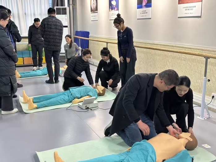 作为彰显学校安全育人特色的重要环节,本次活动专设应急救护技能培训,采取“理论讲解、情景模拟、实操考核”一体化模式,为参会人员系统讲授了心肺复苏、AED使用、创伤包扎等核心急救技能。学校将持续为产业链企业提供“安全技术+应急救护”定制化培训,并为区域产业链供应链安全稳定发展,输送既具备扎实专业技能、又拥有过硬安全素质与应急处突能力的复合型人才,切实发挥我院在服务区域安全发展中的支撑作用。