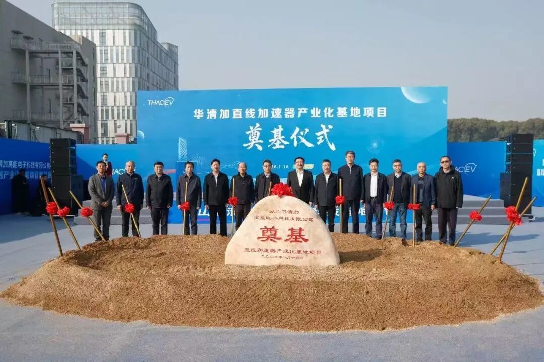 1月16日上午,华清加直线加速器产业化基地在苏州昆山举行奠基仪式。清华大学理学院院长段文晖,清华大学工程物理系教授、系主任黄文会,清华大学工程物理系教授、加速器团队负责人陈怀璧,昆山市领导秦微晰参加活动。