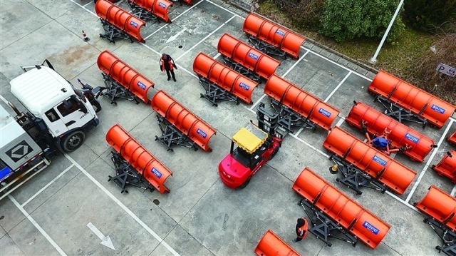1月17日,海州区环卫人员正在为车辆加装除冰雪设备。针对今年首场寒潮可能带来的冰雪灾害天气,海州区环卫集团组织安排129台套破冰车、多功能除雪车、车载撒布机、铲车等应急除冰雪设备,成立5支共500余人的扫雪除冰应急保障队伍,随时应对可能出现的冰雪灾害,全力保障恶劣天气期间市区道路安全畅通。
