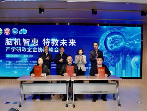 2026年1月17日,“脑机智惠 特教未来——产学研政企金协同峰会”在南京仙林科技成果转化中心举办。本次峰会由南京特殊教育师范学院联合江苏省残疾人联合会、栖霞区人民政府、南京市残疾人联合会、江苏省人民医院共同主办,汇聚政府、产业、高校、科研、医疗、金融等领域百余名代表,聚焦脑机接口前沿技术与特殊教育的深度融合,探索科技助残创新路径。会上,多项务实成果落地为特教事业高质量发展注入强劲动能。