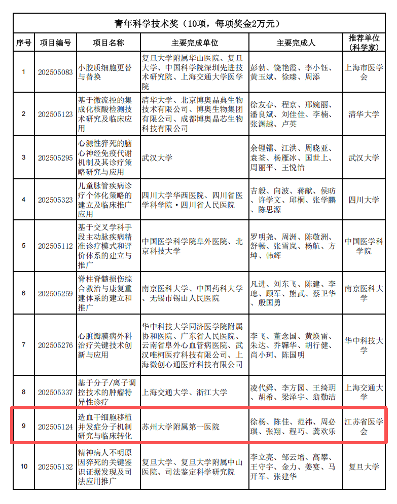 由苏大附一院血液科团队申报的