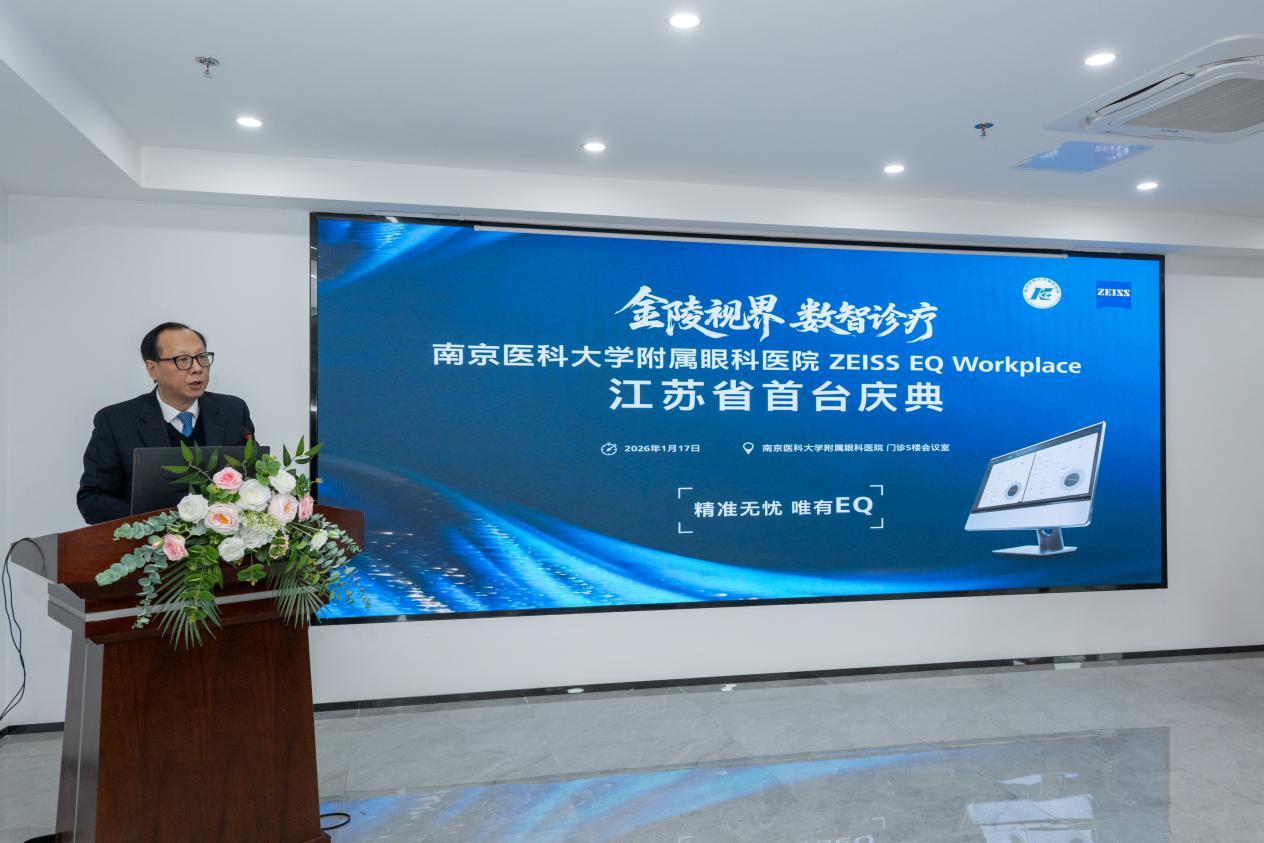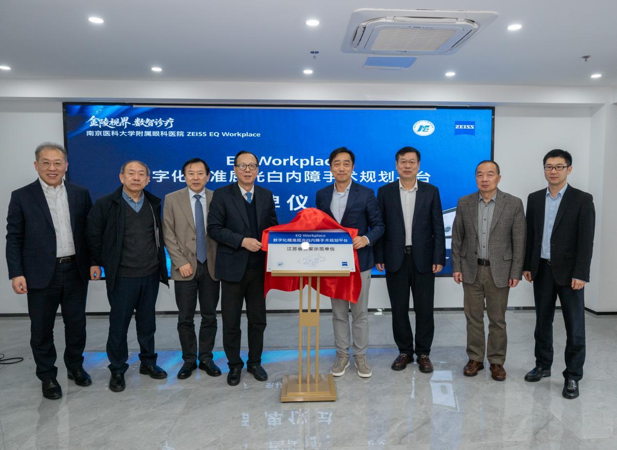 1月17日,江苏省首批“蔡司EQ workplace数字化精准屈光白内障手术规划平台”,在南京医科大学附属眼科医院正式揭牌落户。该平台的引入,标志着该院白内障诊疗向数字化、精准化、高效化迈出关键一步,将为患者提供更高水平的屈光性白内障手术解决方案。省内著名眼科专家管怀进教授、蒋沁教授、刘庆淮教授、卢奕教授、张晗教授、徐向忠教授等共同出席了揭牌仪式。